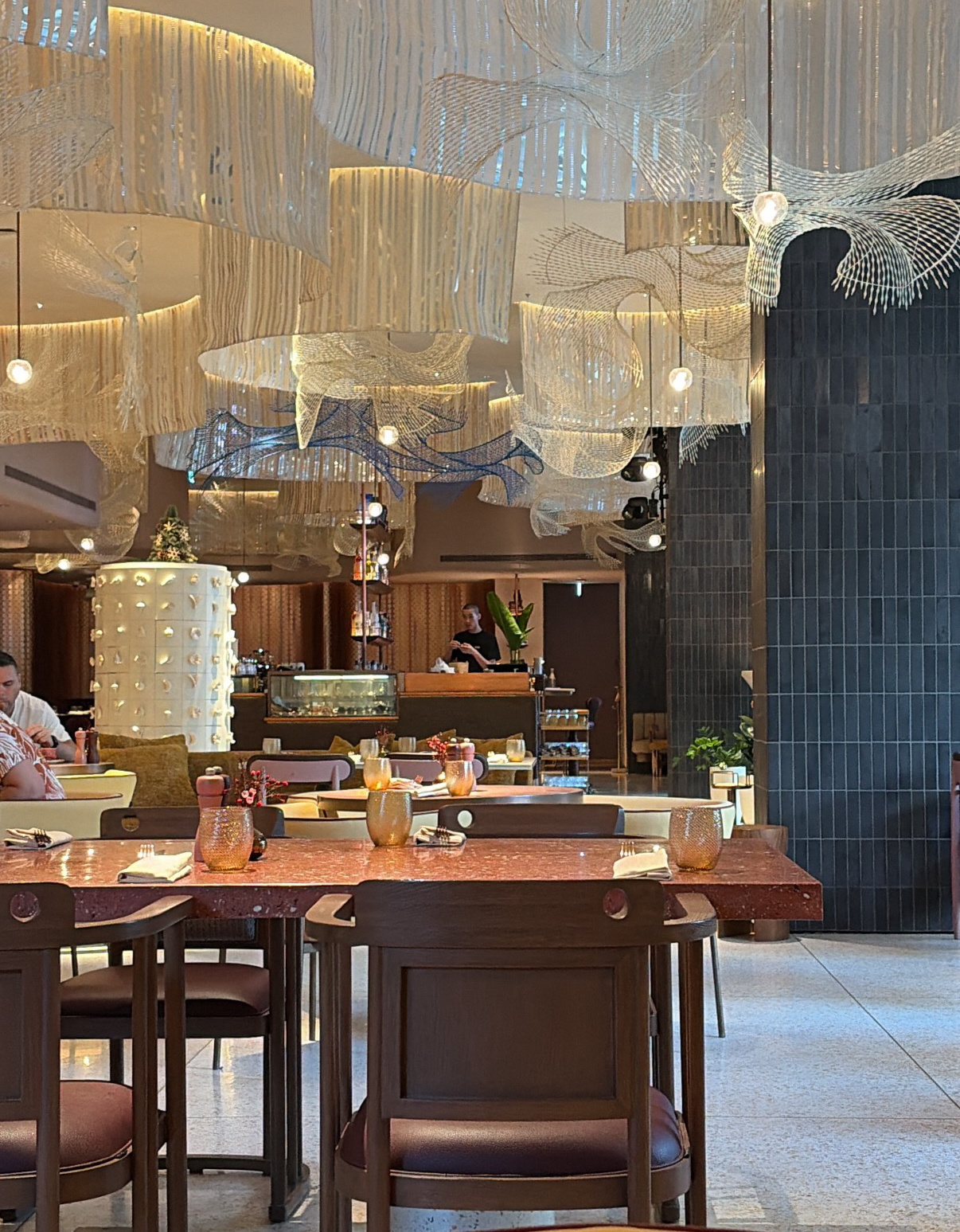그리고 1층 다이닝의 경우 복도를 기준으로 Bar area, Dining area 가 나뉘는데 Bar 쪽에 앉을경우 직원들이 잘 지나다니지 않아, 무언가 요청을 하려면 꽤나 기다려야하는 경우가 많이 발생했었다. 더불어 1층 공간이 뻥 뚫려있어서 택시를 기다리는 인원과 밥을 먹는 인원이 구별이 안되어 뭔가 고급호텔에서 밥을 먹는 다는 느낌 보다는 주위 시선이 많이 느껴지고 어지러운 인상이었다.
